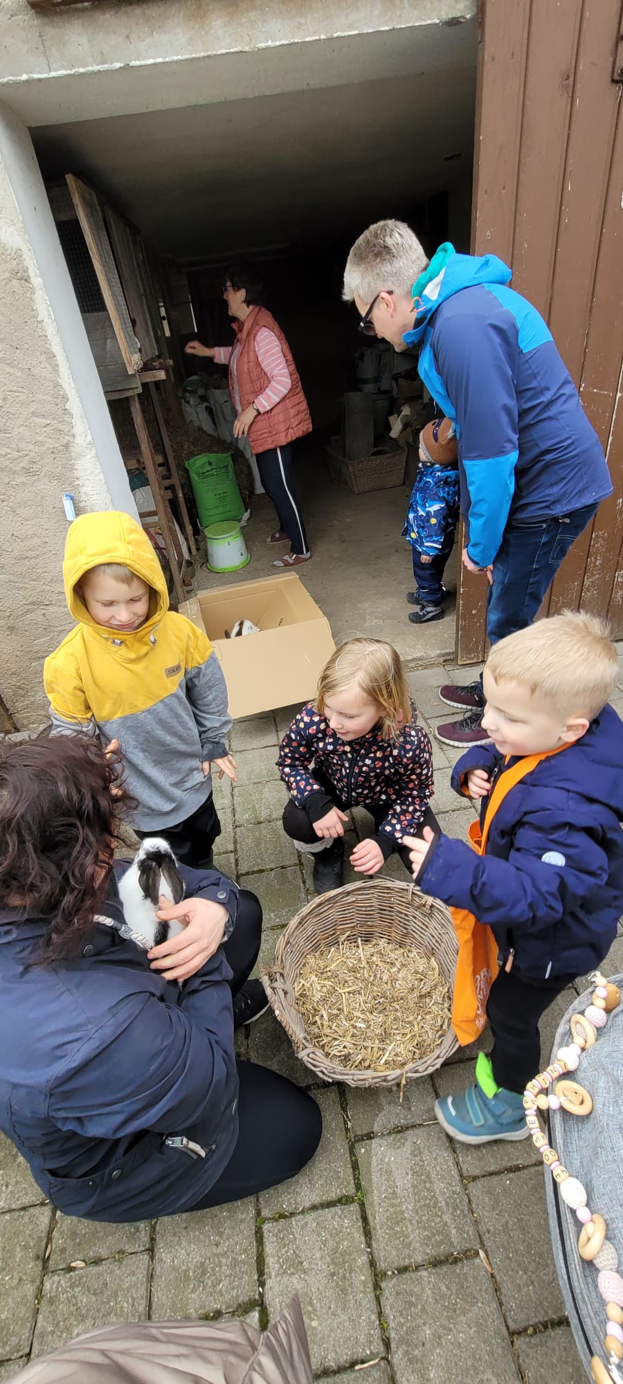 Unser Weg führte uns diesmal zu einem Bauernhof in der Umgebung, und dort wartete eine ganz besondere Überraschung auf die Kinder: Wir durften echte Hasen besuchen! Die flauschigen Langohren aus nächster Nähe zu beobachten, war für unsere kleinen Teilnehmer das absolute Highlight und ließ die kalten Nasen schnell vergessen.